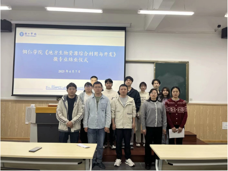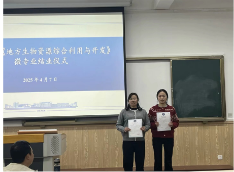 2025年4月7日,材料与化学工程学院《地方生物资源利用与开发》微专业团队在学科楼A711教室举行首届微专业结业仪式。仪式由杨海老师主持,陈仕学教授等5位导师及8名结业学生共同出席。结业仪式上,负责人陈仕学教授为8名优秀学员颁发结业证书并致辞。陈教授回顾了微专业建设历程,强调微专业建设是学校深化教育教学改革的重要探索,通过跨学科课程体系设计,着力培养学生的复合型知识结构和实践创新能力。还特别表扬了学员们展现出求知热情和钻研精神,充分肯定学生在专业素养、实践能力和团队协作等方面取得的显著进步。微专业培养打破了传统学科边界,为应用型人才培养开辟了新路径。首批学员的优异表现坚定了团队继续推进教学改革的信心。我们将以此为契机,进一步优化课程体系,让更多学生通过微专业学习获得专业发展的新动能。