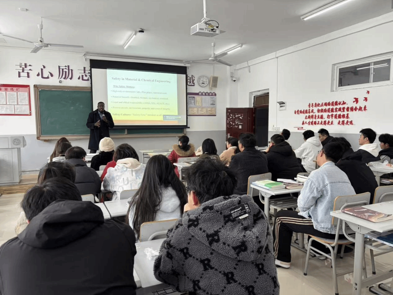 本次授课既是研究生安全教育的重要环节,也是我院推进国际化办学的生动体现。近年来,我院持续拓展国际化师资与课程资源,引进外籍教师参与研究生核心课程和学术训练,推动课程内容与国际安全标准、工程规范及前沿案例接轨;同时鼓励中外教师联合授课与科研协作,促进研究生在学术视野、专业表达与跨文化沟通能力上的综合提升,初步形成了“国际师资引领—课程体系对标—科研协同支撑”的国际化培养路径。课后,同学们表示本次课程案例鲜明、要点清晰,使大家进一步认识到实验安全的严肃性与细节管理的重要性,理解了“风险预防—规范操作—及时处置”的系统思路,有助于提升在材料加工与化工过程中的安全意识与风险应对能力。