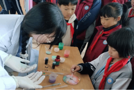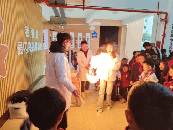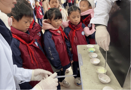 11 月 20 日上午,2023级化学工程与工艺班的同学们前往bv伟德国际1946附属小学,为小朋友们演示趣味化学实验。“牛奶彩虹”“掌上火焰”、“魔法药水”、“焰色反应”、“水中火焰”、“激光爆气球”、“熔岩灯”、“神奇的紫甘蓝”、“魔法变色水”等一系列神奇实验轮番上演,奇妙现象令观摩学生们惊叹,极大激发了他们对学习科学实验的热情。