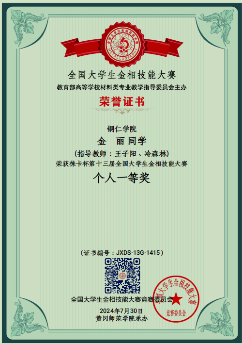 金丽 同学 获个人“一等奖”