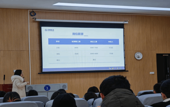 在互动环节,同学们积极提问。有的同学对公司的研发方向和未来发展规划感兴趣,宣讲者详细地解答了同学们的疑问,让同学们对公司的发展前景有了更清晰的认识。还有的同学关心入职后的培训体系,宣讲者也一一作答,强调了公司对员工培训的重视程度。