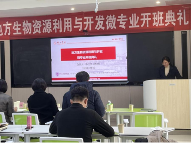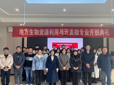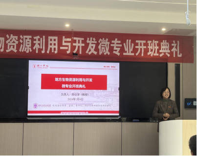 1月4日,伟德官网首届《地方生物资源利用与开发》微专业开班典礼在依仁楼B305智慧教室举行。bv伟德国际1946副校长罗静、副校长龚静、教务处副处长冉耀宗、材化院党委副书记龙禹、江口县生物科技有限公司董事长姚琼等出席开班典礼,材料与化学工程学院副院长陈仕学教授主持开班典礼。