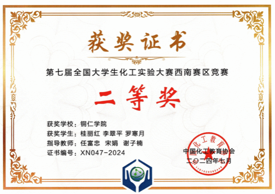 为了贯彻落实全国教育大会精神,推动高等学校化工类专业“新工科”建设,提高化工类专业核心课程的教学质量,提升教育为化工行业发展的服务水平,助力新质生产力发展。2024年7月18日-21日,由教育部高等学校化工类专业教学指导委员会和中国化工教育协会以“启航—化学工程师”为主题,由广西大学承办了第七届全国大学生化工实验大赛西南赛区竞赛决赛,本次竞赛共有西南地区48所高校参加,bv伟德国际1946材料与化学工程学院2021级化学工程与工艺专业几名同学在任富忠、宋娟等教师的精心筹划指导下参加了选拔赛,最终由杜丽红等三名同学组成的一支参赛队伍进入本次西南区决赛,本次区赛比赛共分为理论考试、虚拟仿真和实际操作三部分进行,学生经过激烈角逐,最终获得了“二等奖”的好成绩。