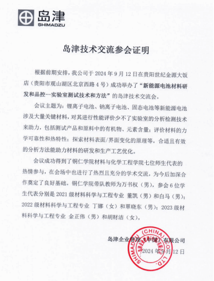 岛津技术交流会参会证明