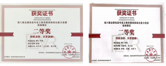 2024年8月,在谢勇、吴小念和刘晓琴老师的指导下,学生参加西南赛区第六届全国食品专业工程实践训练综合能力竞赛,获二等奖2项。