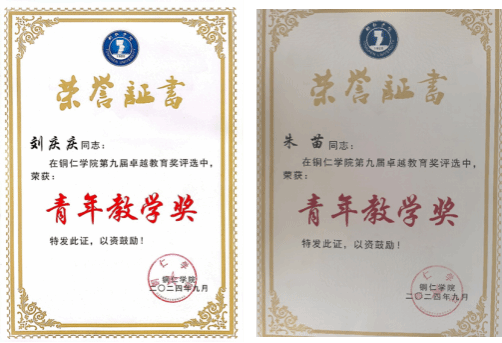 2024年9月,刘庆庆、朱苗老师在bv伟德国际1946第九届卓越教育奖评选中获“青年教学奖”。
