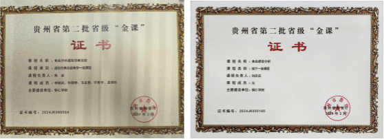 2024年2月,朱苗和刘庆庆老师获批贵州省第二批省级“金课”建设,分别是《食品分析虚拟仿真实验》和《食品感官分析》。