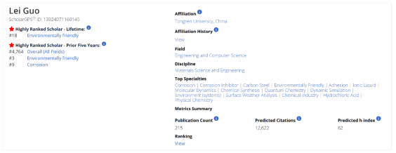 ScholarGPS汇集了全球各学科领域3000多万名学者的信息档案以及海量论文、专利、书籍大数据资源。应用人工智能、数据挖掘、机器学习和其他数据科学技术,对学者的研究成果(发表论文数)、影响力(引用次数,已排除自引)和论文质量3项指数进行综合分析,对全球超过3000万位学者和55000家机构在各个领域、学科和专业方面(14个领域、177个学科及超过35万个专业)的卓越表现进行排名。2024年榜单,中国内地有超200位学者入选“终身”榜单,超1000位学者入选“近5年”榜单。