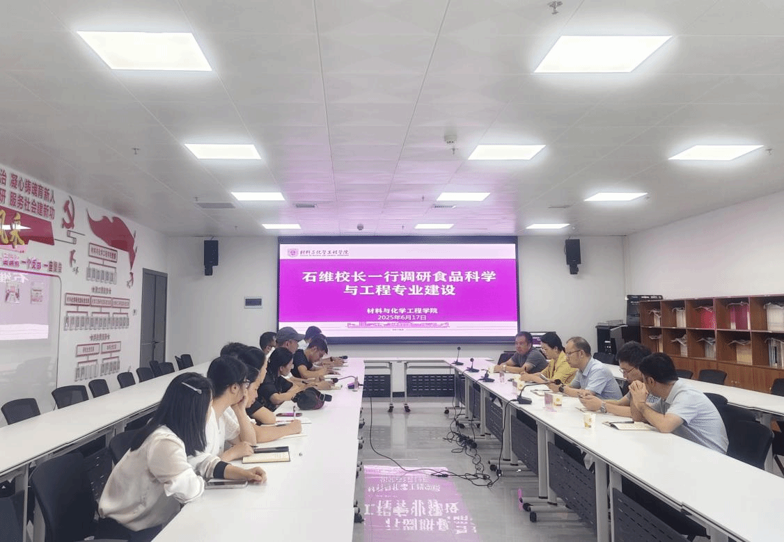 6月17日上午,校长石维、人事处处长周曾艳、人事处副处长杨雷霄、教务处副处长冉耀宗一行到材料与化学工程学院调研指导工作。材料与化学工程学院班子成员和食品科学与工程专业全体教师参加调研会。