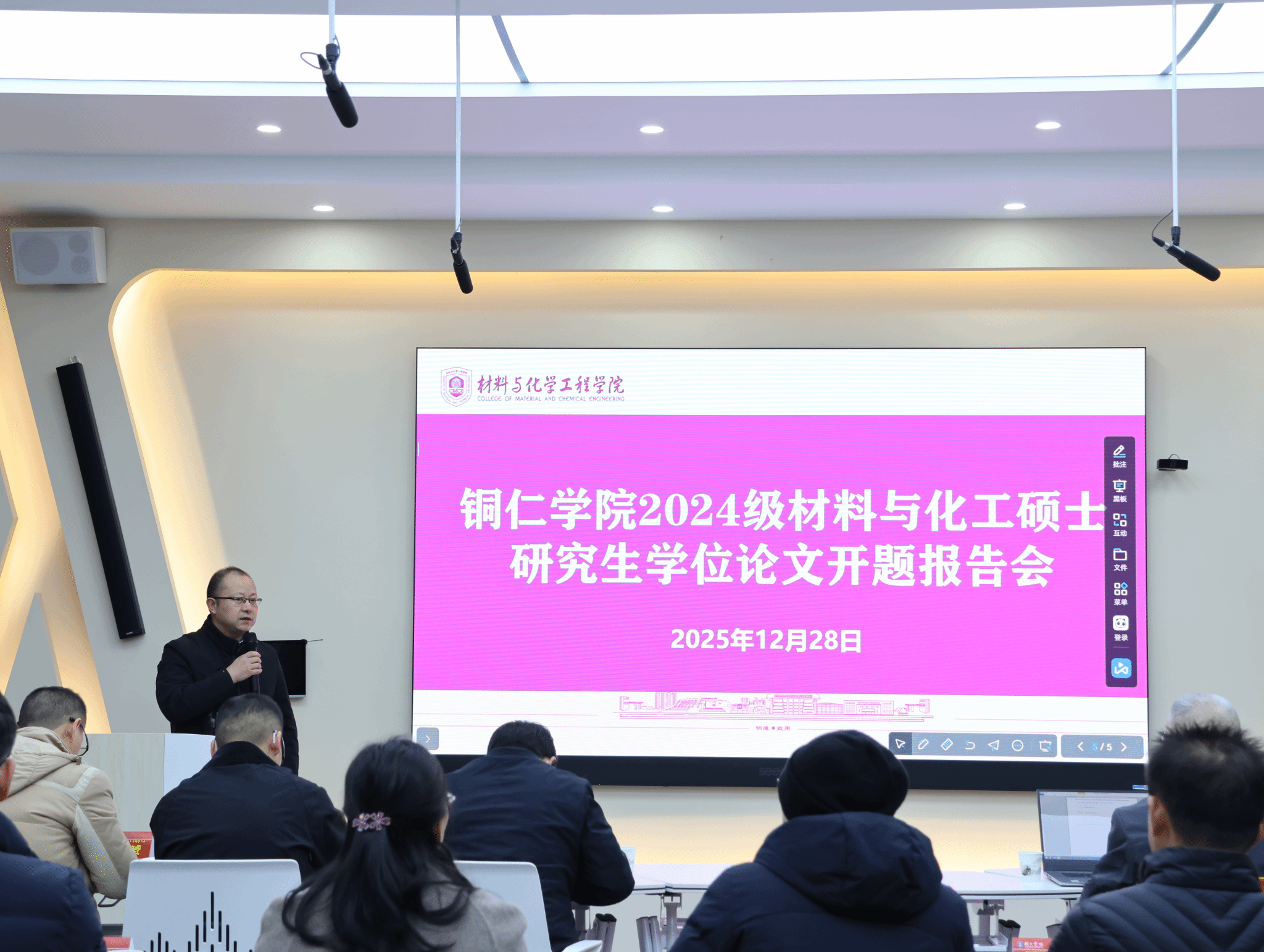 12月28日,我院在学科楼组织召开2024级材料与化工硕士研究生学位论文开题报告会。2024级材料与化工专业硕士研究生共22名参加会议,按研究方向分组同步开展开题答辩。本次报告会邀请中伟股份、大龙汇成新材料、能矿锰业、金瑞新材料、松桃中医院等单位6名校外行业专家参与评审指导,进一步强化校企协同育人实效。材料与化工学科总牵头人石维教授到场指导开题工作,并强调开题报告是研究生开展学位研究前提交的规划性报告,是厘清课题核心价值、明确研究路径与关键节点的重要环节,对后续研究工作有序推进具有重要意义。