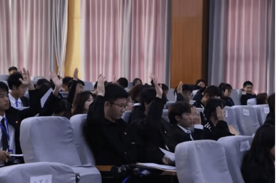 大会经过代表们审议表决形成决议,同意上届团学干部们作的工作报告,同意未来一年的工作计划,同意以王丕业同学作为团长的28名代表作为材化学院学生代表团参加学校第六次学生代表大会。