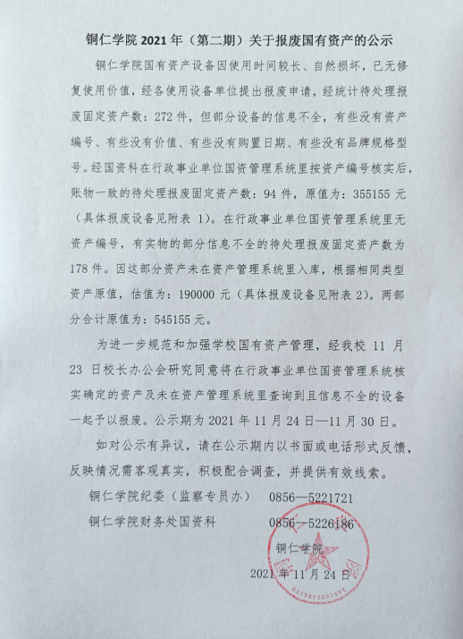 bv伟德国际19462021年(第二期)关于报废国有资产的公示
