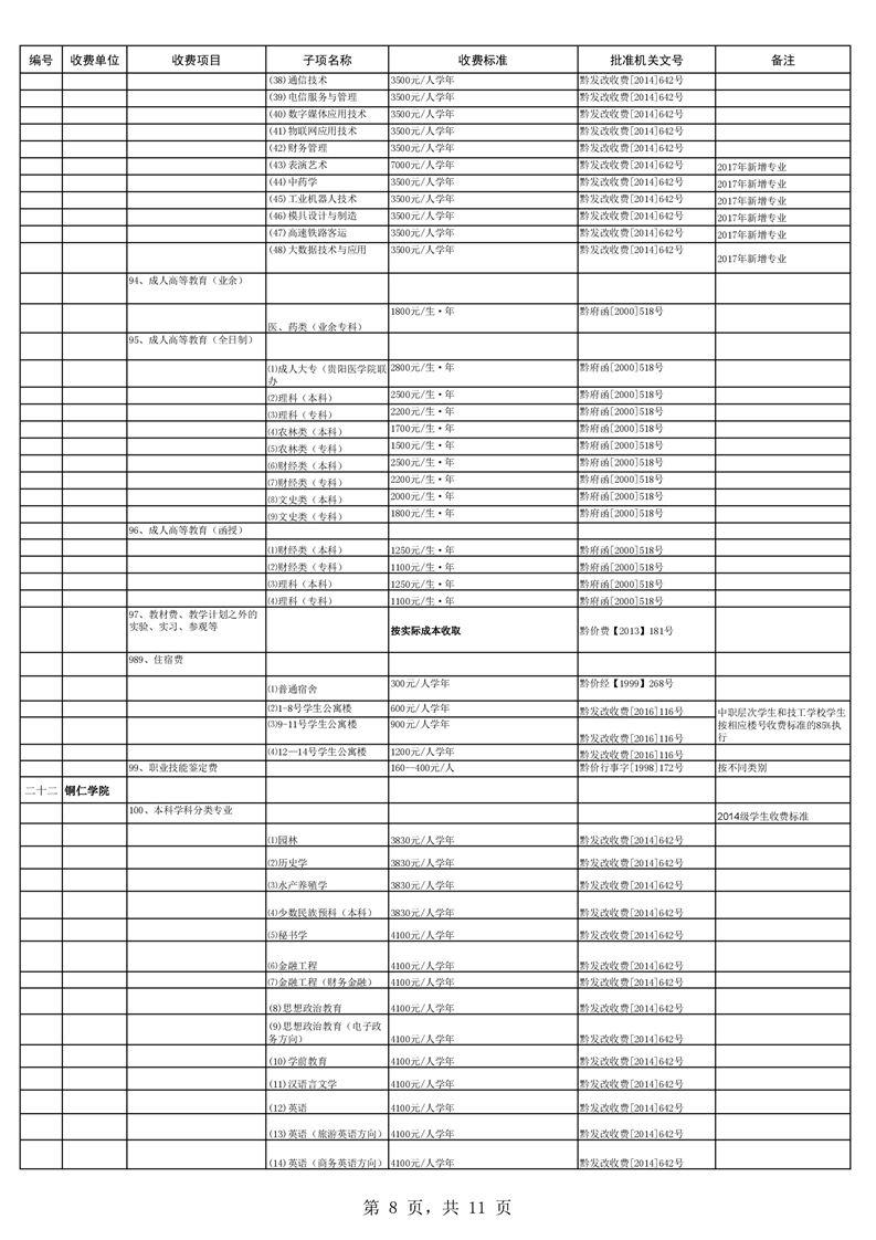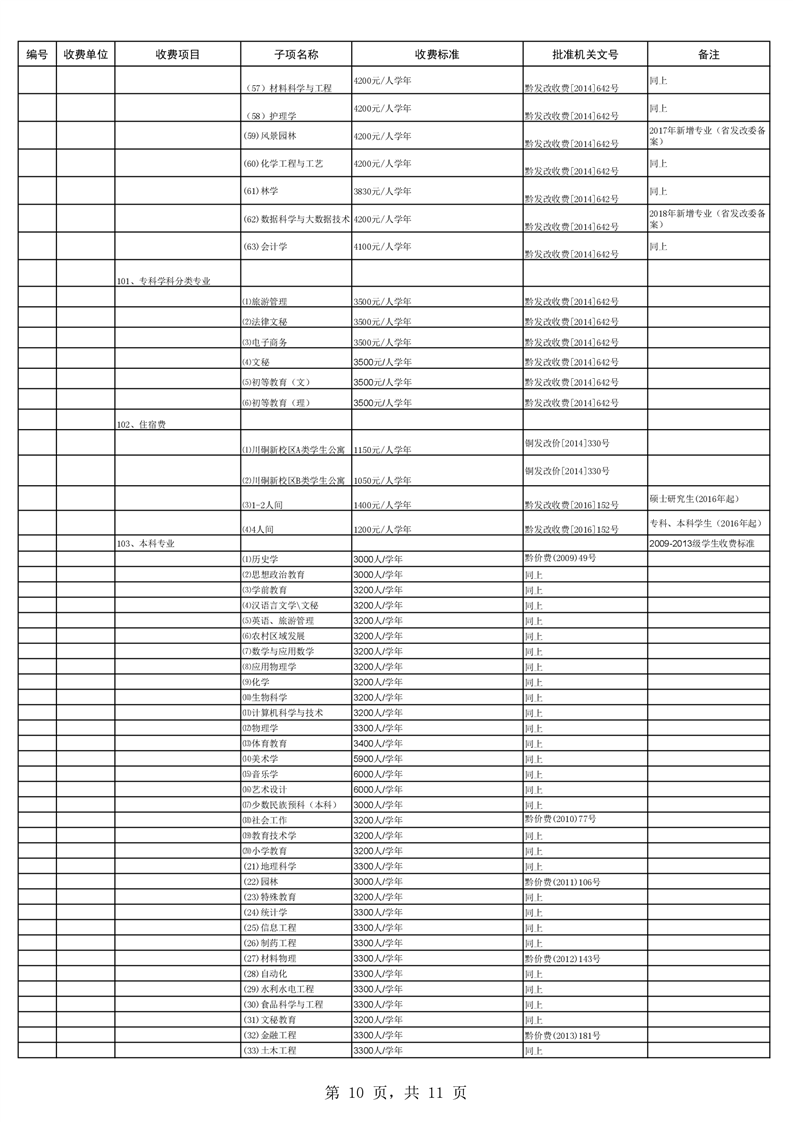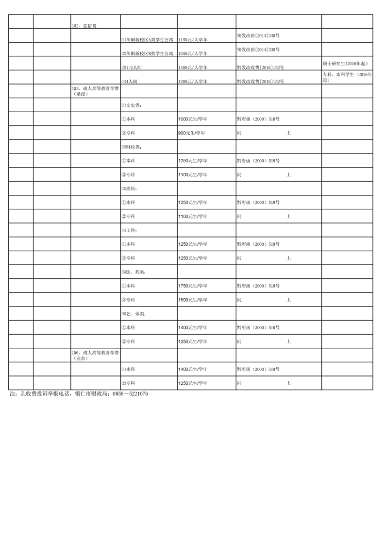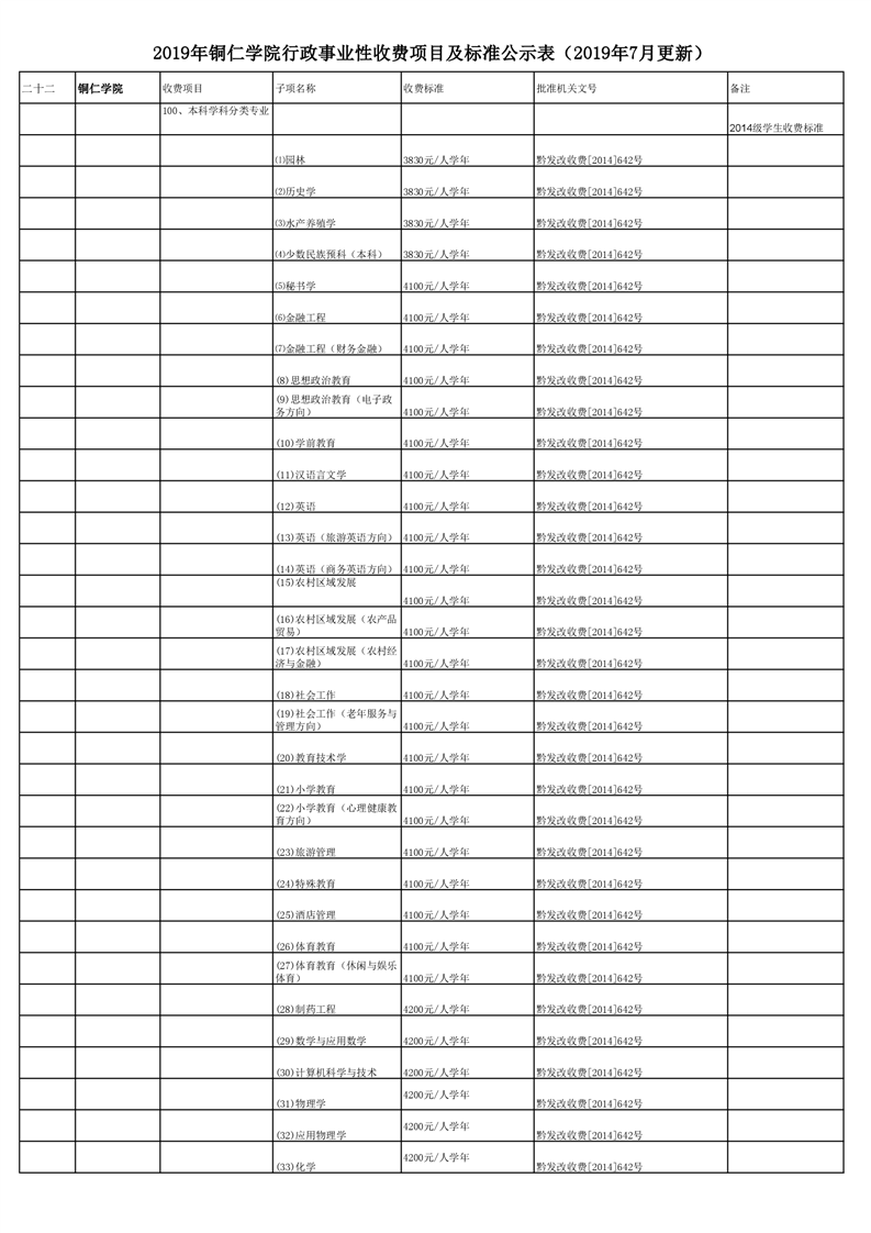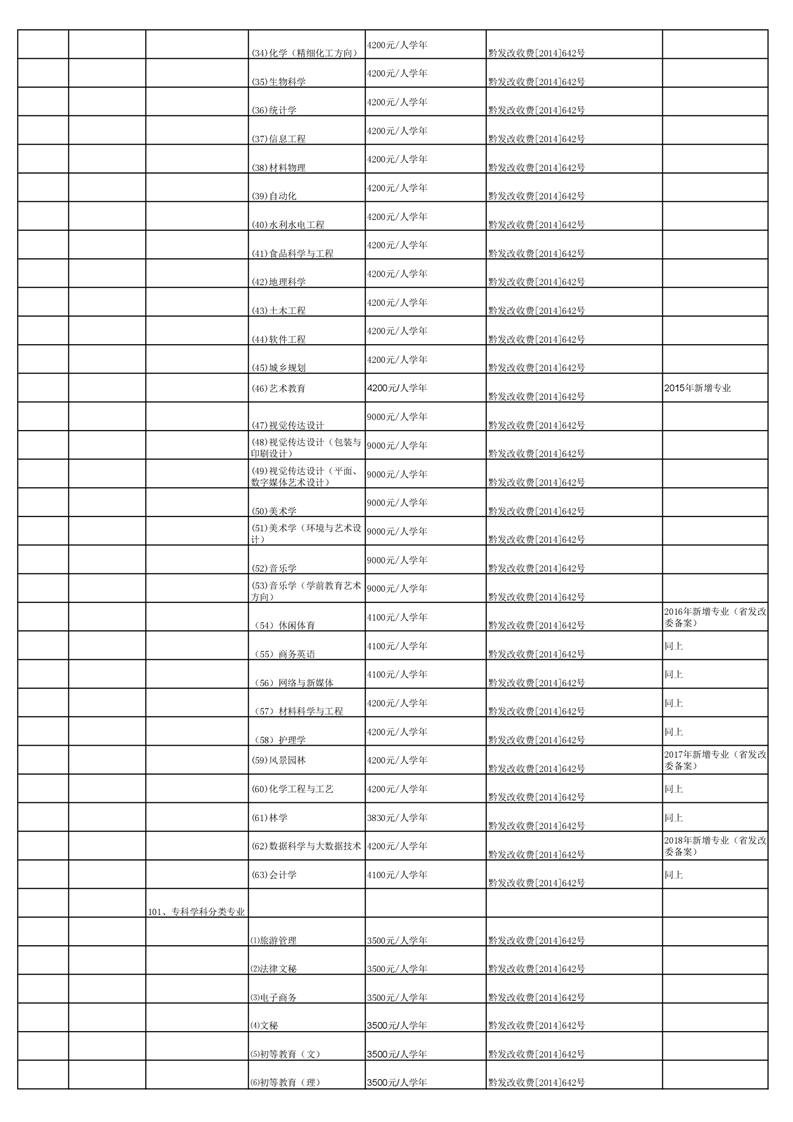 铜仁关于新增硕士、本科相关专业学费标准公示