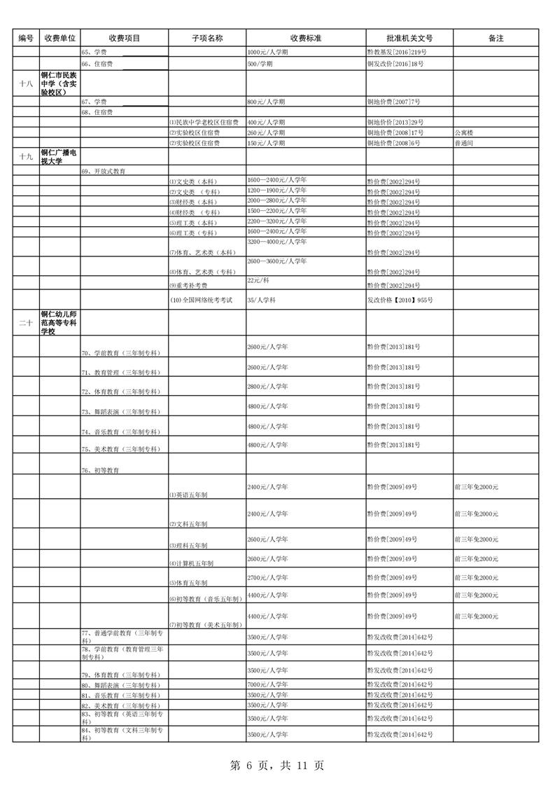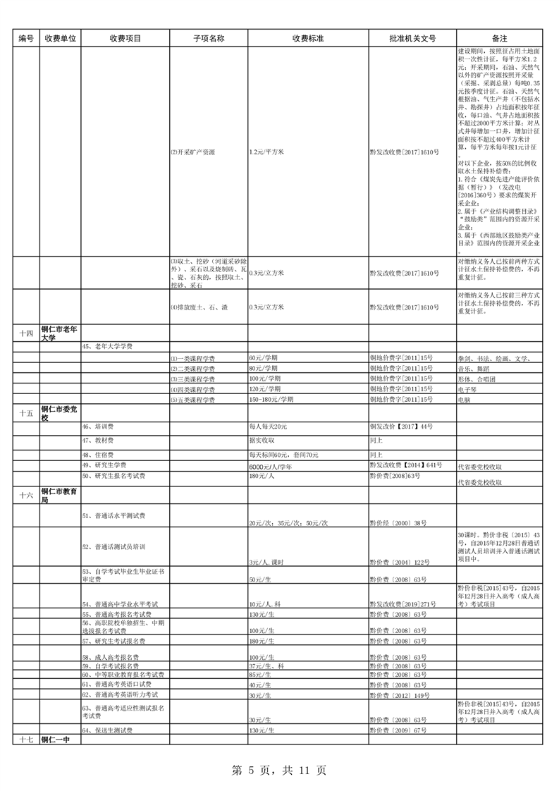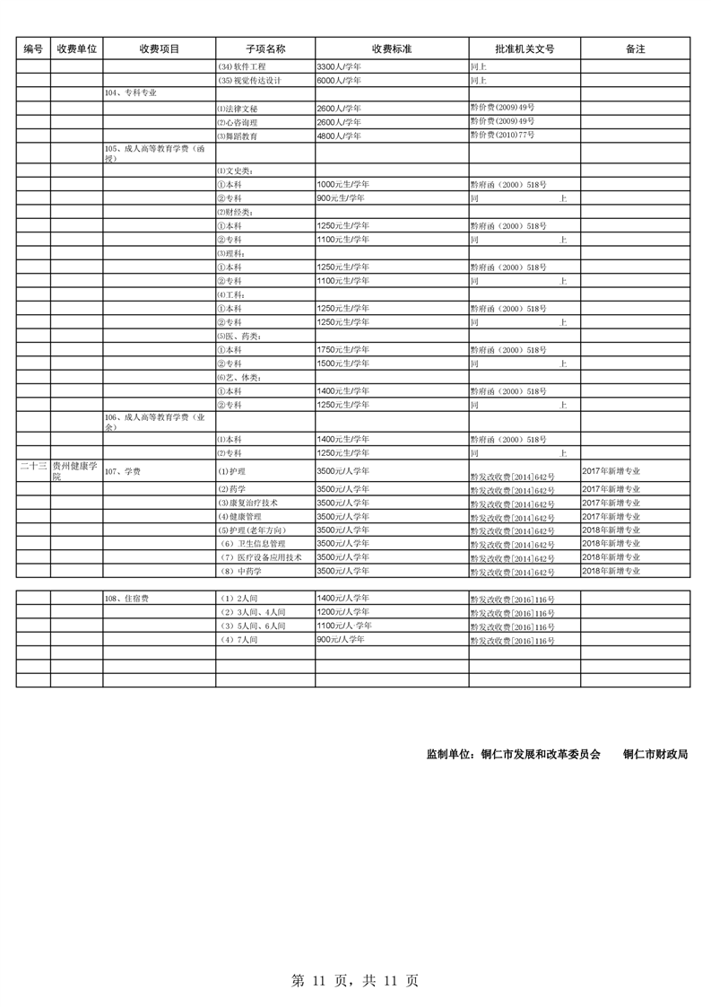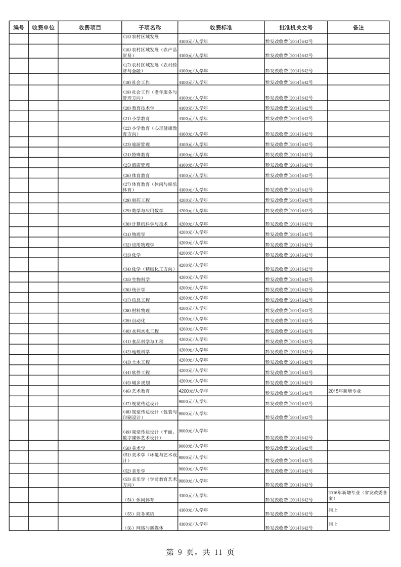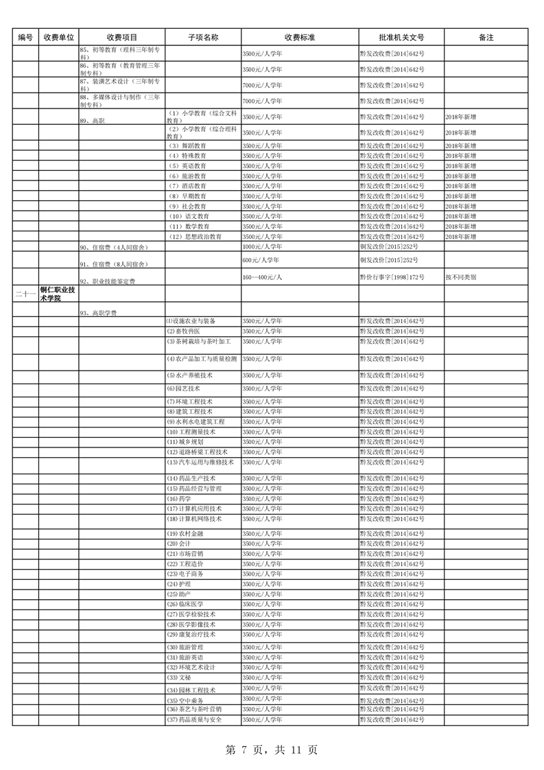 铜仁关于新增硕士、本科相关专业学费标准公示