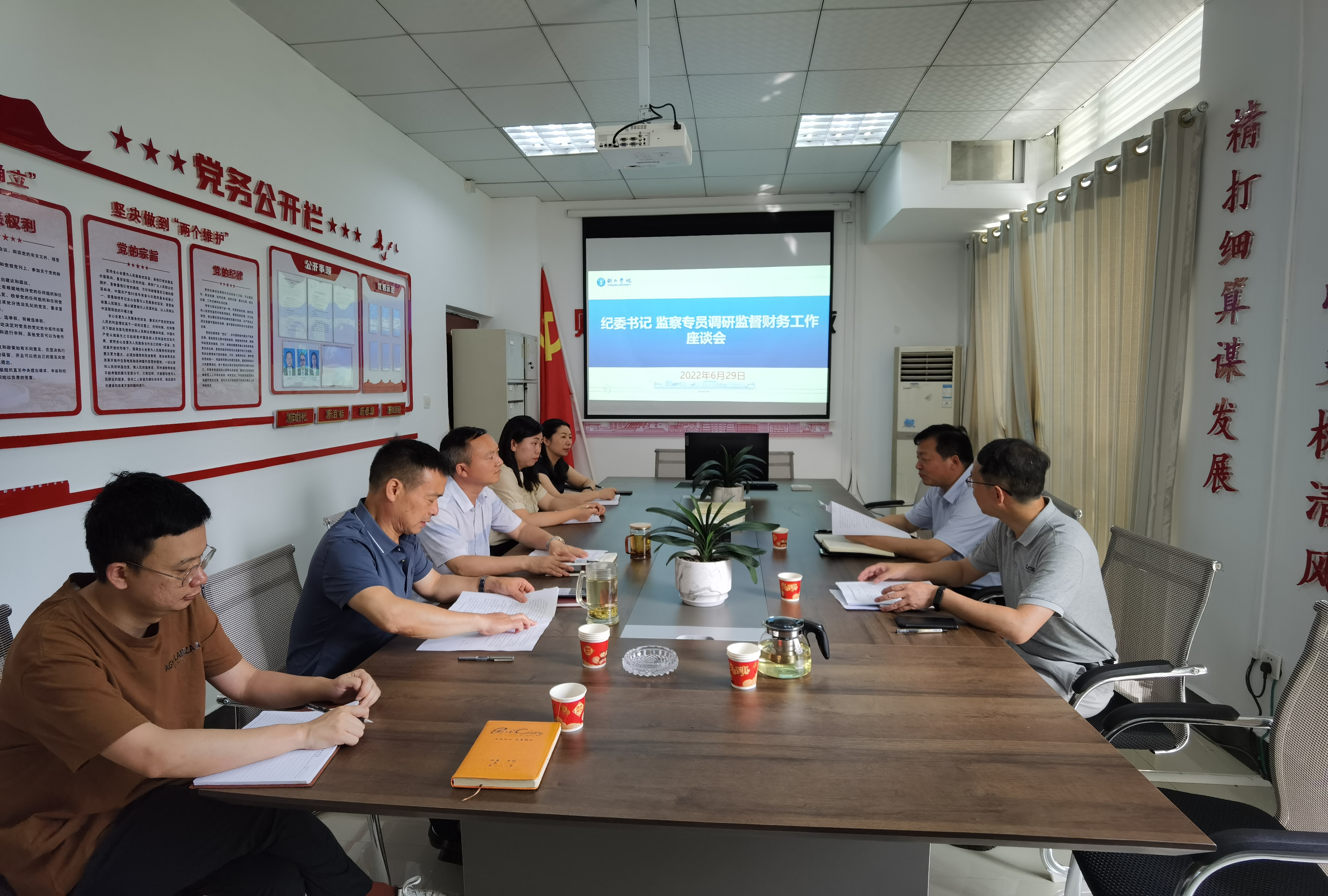2022年6月29日上午,校纪委书记、监察专员吴先佳到财务处开展财务监督工作调研座谈会,纪检监察室主任王劲松、财务处处长蒲天银、副处长陈尚荣以及财务处全体副科级以上干部参加。