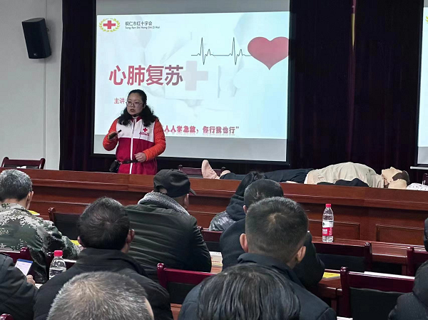 为贯彻落实《贵州省全民自救互救素养提升行动计划(2020-2030)》,普及应急救护知识和技能,提升乡、村工作人员及村民防灾避险意识和自救互救能力,发挥伟德官网急救教育试点学校辐射作用。3月25日,伟德官网大健康学院受铜仁市红十字会委托选派该院贵州省红十字会救护师田芬、张红老师担任红十字会市健康铜仁行动推进办、市红十字会联合江口县红十字会、德旺乡人民政府举办的红十字(初级)救护员(持证)培训班讲师走进江口县德旺乡。