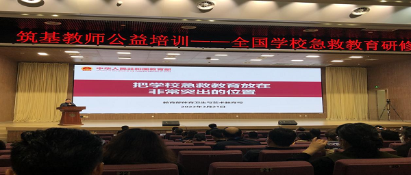 仪式上教育部教师工作司就对急救教育工作重要性进行了说明,并提出:bv伟德国际1946大健康学院作为全国学校急救教育试点院校之一,在今后的工作活动中要将大健康和急救教育结合起来。随后大健康学院方新老师上台领取了“全国学校急救教育试点学校”牌匾。活动还在山东第一医科大学安排了急救基础知识、心肺复苏、急救教育装备等相关内容培训。