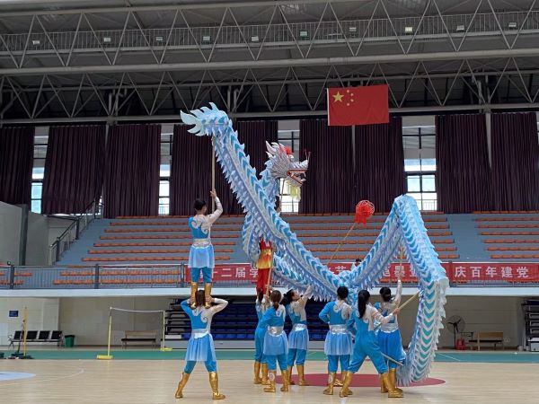 自队伍组建以来,伟德官网女子舞龙队员一直在吴海龙老师的指导下保持着日常训练。在疫情常态化背景下,伟德官网舞龙队员严格遵守疫情防控要求,暑假留校进行封闭式训练,由于训练强度大,训练过程中常有队员受伤、体能透支等情况发生,但队员们都咬紧牙关,坚持训练、不曾懈怠,她们相互鼓励,反复磨合,不断强化,一次次突破难度动作瓶颈。在本次比赛中展示了坚持不懈、永不言败、团结协作、顽强拼搏、勇于进取的体育精神,最终取得双冠,在省内比赛创历史最好成绩,为学校赢得了荣誉。