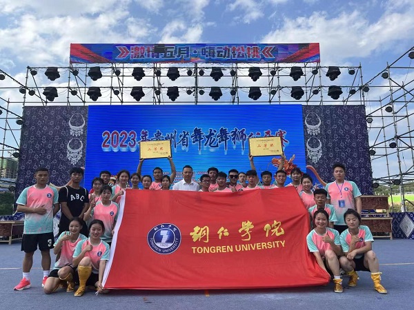 2023年5月26日-29日,2023年贵州省舞龙舞狮公开赛在铜仁市松桃县世昌广场举行,共有来自全省各地27支参赛队伍参加比赛。伟德官网舞龙队以大健康学院吴海龙老师为教练,带领来自大健康学院的24名运动员参加比赛,勇获男子传统舞龙第一名、舞龙规定第二名、竞速舞龙第三名和自选第四名;女子获舞龙规定第一名、传统舞龙第二名、自选第二和竞速舞龙第二名;男、女团体均获二等奖的优异成绩。