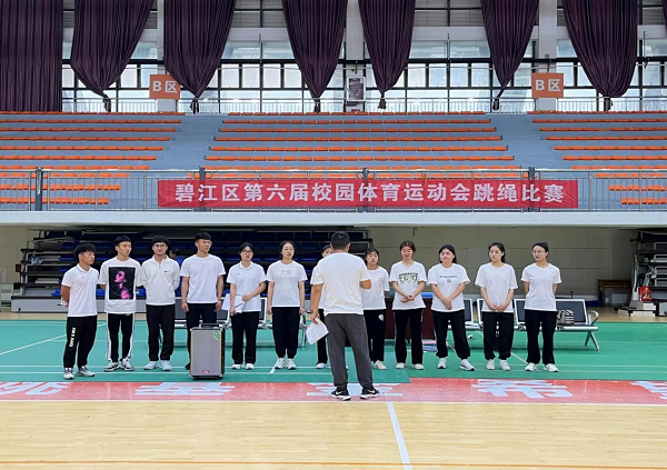 2023年6月3—4日,铜仁市碧江区第六届校园运动会跳绳比赛在bv伟德国际1946体育馆拉开序幕。此次赛事由铜仁市碧江区教育局主办,bv伟德国际1946大健康学院承办。bv伟德国际1946体育教育专业的14名同学参与执裁,参赛队来自碧江区高中、初中、小学共23所学校。