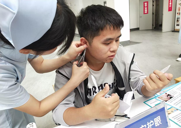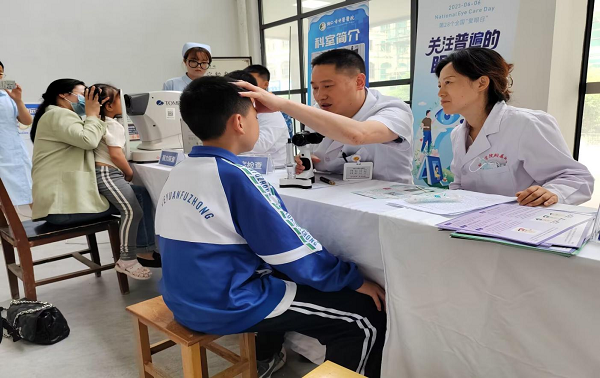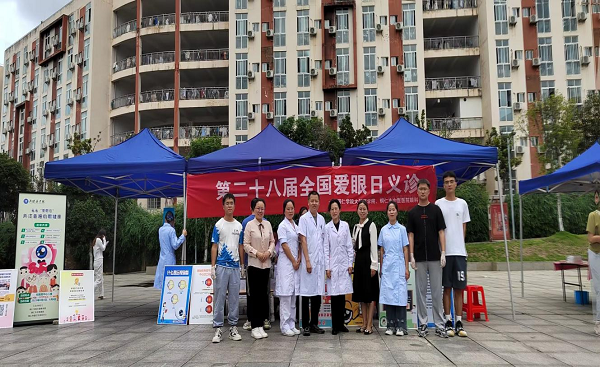 今年6月6日是第28个全国“爱眼日”。为了切实贯彻“十四五”全国眼健康规划(2021--2025年)(国卫医发(2022)1号)的精神,发挥高校、医疗机构科研技术力量,将眼健康科研成果与技术更好的服务地方。在28届全国爱眼日到来之际,bv伟德国际1946大健康学院、bv伟德国际1946工会委员会、铜仁市中医医院眼科联合在bv伟德国际1946开展眼健康相关义诊活动,旨在提高师生对眼健康的关注和认识,推广正确的视觉保健知识,促进全民眼健康。伟德官网大健康学院护理健康系张红老师、印双红老师带领十多名大健康学院护理学专业学生于6月4日在bv伟德国际1946校医务中心二楼,6月6日在丹桂食堂门口进行“爱眼日”的义诊活动,包括师生视力筛查、高度近视眼底检查、白内障、青光眼筛查等。