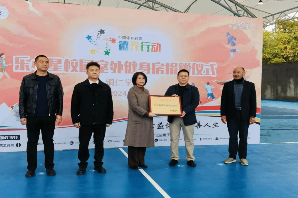捐赠仪式上,龚静副校长在致辞中表示:省、市体彩中心一直是社会公益的坚定践行者,始终将推动体育事业高质量发展视为己任,并对教育领域给予了深切的关注,尤其注重学生的健康成长。”随后,贵州省体育彩票管理中心党支部书记陈治华和bv伟德国际1946副校长龚静正式交接了“乐小星校园室外健身房”的纪念牌匾,标志着该室外健身房正式落户bv伟德国际1946并投入使用。余静书记向铜仁市体育彩票管理中心主任杨阳回赠锦旗。