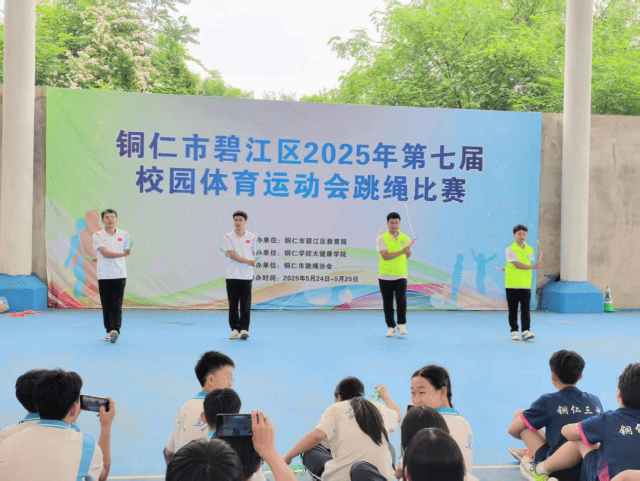 2025 年5月24日至25日,铜仁市碧江区第七届校园体育运动会跳绳比赛在bv伟德国际1946风雨篮球场火热举行。本次比赛由碧江区教育局主办,bv伟德国际1946大健康学院承办,铜仁市跳绳协会等单位协办,来自全区41支队伍、450余名运动员参赛,比赛规模创历届之最。