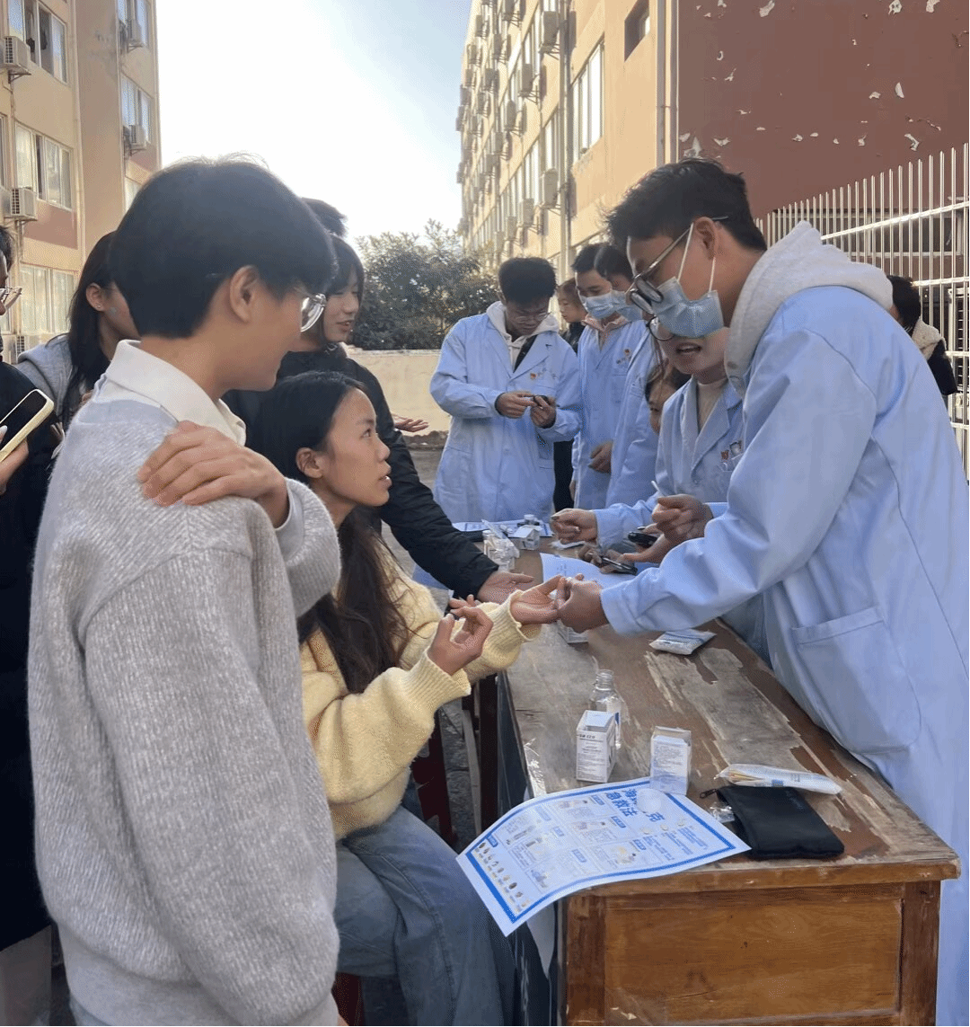 活动设有健康服务区与健康盲盒挑战区。在健康服务区,同学们积极参与免费血糖检测,并聆听健康建议;健康宣教环节中,现场演示了海姆立克急救法等实用技能,太极拳教学也引来不少同学加入体验,大家在互动中学习知识、感受健康生活的乐趣。完成健康项目后,参与者还可进入健康盲盒挑战区,通过趣味运动或健康问答赢取精美纪念品。整场活动在欢声笑语中进行,健康知识与欢乐氛围交织融合。