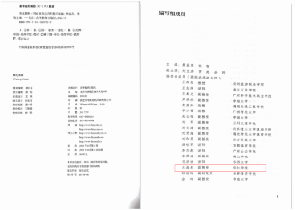 近日,由国家体育总局科教司组编,黄益苏、张智主编,全国31所高校42名教师共同参编完成的教材《舞龙舞狮》正式由高等教育出版社出版发行。我院吴海龙老师参与此教材舞龙舞狮课程思政示范课的设计和视频剪辑制作,将其所获贵州省普通本科高校课程思政示范课程、贵州省金课(舞龙舞狮)建设的成果融入其中。目前,该教材已在伟德官网2023级体育教育专业舞龙舞狮课程上开始推广使用。