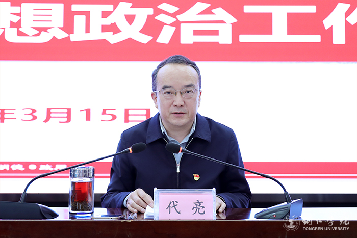 会上,代亮总结回顾了过去一年的工作,安排部署了今年的工作。他指出,过去一年,学校坚持以高质量发展统揽全局,成功新增为硕士学位授予单位,马克思主义理论一级学科和材料与化工、农业硕士增列为硕士学位授权点,实现了从本科教育到研究生教育的新跨越,改革发展成效十分明显。他强调,今年是党的二十大和贵州省第十三次党代会召开之年,也是学校实施“十四五”规划重要之年,做好党建思政工作责任重大、意义重大。一是要深刻领悟习近平总书记关于党建思政工作重要论述,坚定社会主义办学方向。习近平总书记关于党建思政工作重要论述,不仅是对高校加强和改进党建思政工作的重申,更是对当今高等教育办学方向与内在灵魂的规定,我们要站在办好中国特色社会主义大学的政治高度,把握精神实质,吃透核心要义,全面提升党建思政工作质量和水平。二是要准确把握当前学校面临的形势任务,增强做好党建思政工作的紧迫感使命感。准确把握学校面临的形势任务,于新变化中识变应变,进一步增强做好党建思政工作的紧迫感使命感,是我们在深度重构的高等教育发展新格局中实现高质量内涵式发展的重要保障。全校党员干部要聚焦高等教育高质量发展的新主题,切实增强做好党建思政工作的紧迫感。三是要压实政治责任,守正创新推动党建思政工作在新起点上实现高质量发展。要突出“两个确立”“两个维护”,在抓好党的政治建设上下功夫;要突出抓基层、强基础,在用力做好基层党组织建设上下功夫;要突出政治过硬、本领高强,在打造德才兼备干部人才队伍上下功夫;要突出培养时代新人,在推进思想政治工作纵深发展上下工夫。