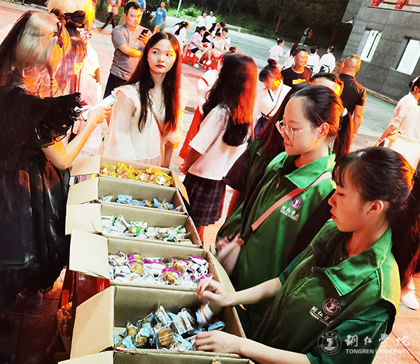 在活动正式开始前,学校青年志愿者早早地将月饼搬到广场一角,为前来观看晚会的师生发放月饼,表达了学校对每一位师生深切的关怀,渲染出了浓浓的中秋情。