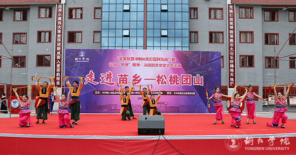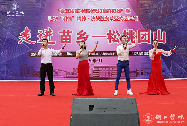 6月16日,伟德官网“文军扶贫冲刺90天打赢歼灭战”文艺巡演暨弘扬“明德”精神·决战脱贫攻坚文艺巡演走进松桃苗族自治县团山易地扶贫移民安置点,师生们为百姓带来了歌曲、朗诵、乐器演奏、金钱杆舞蹈等精彩节目,给观众们呈上了一场丰盛的文艺盛宴和精神大餐。
