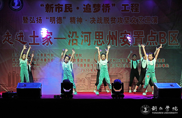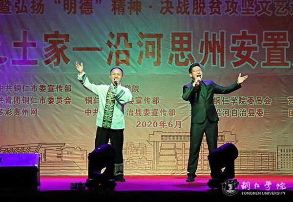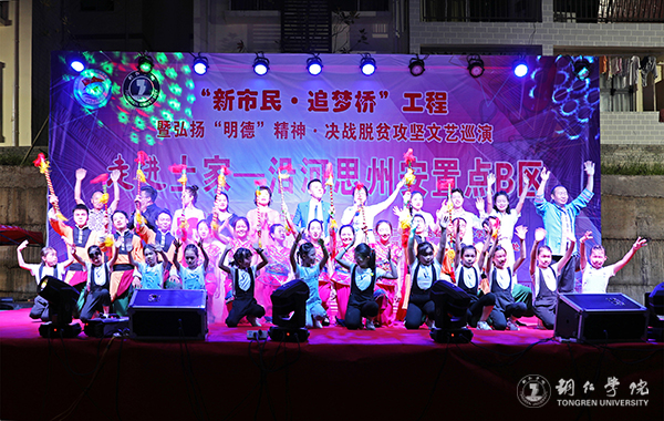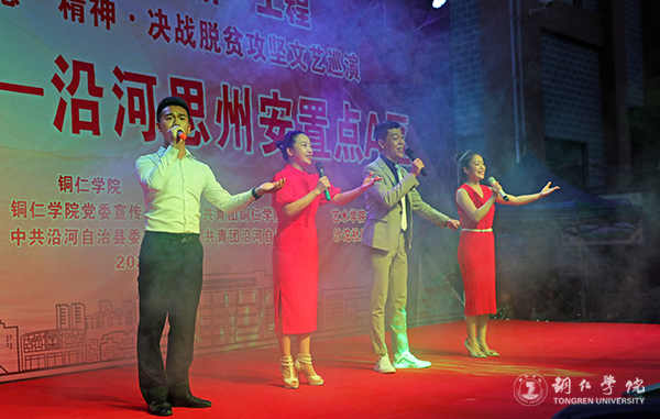 “在全面建成小康社会决胜之年,我们学校高度重视文军扶贫工作,积极响应党的号召,积极动员师生参与文军扶贫,凝聚文军力量,施展文艺才能,先后走进了江口县梵瑞社区、玉屏县康华社区、松桃县团山社区以及沿河县黄土镇、泉坝镇、思州安置点开展了8场文艺巡演,为决胜脱贫攻坚、实施乡村振兴注入了学校的力量。”此次“文军扶贫”文艺巡演小分队的领队、艺术学院党委副书记麻晔斐如是说。