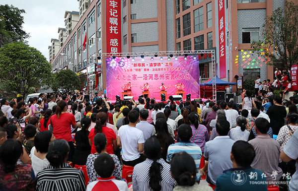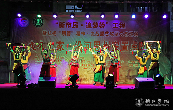 伟德官网团委书记周曾艳说:“为落实好贵州省‘新市民·追梦桥’工程,更好地搭五桥建五家,作为地方高校,伟德官网充分发挥高校人才资源优势,为我们的易地扶贫搬迁安置区群众送文化。这次,咱们组织的文艺团队走进沿河县思州易地扶贫安置区,为我们的社区移民居民送文艺活动,希望社区居民能更好地融入到城市生活当中。”