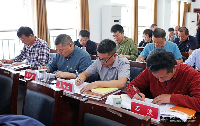 朱洪波指出,作为高等学校的领导干部,要牢固树立大历史观,搞清楚学校的“前世今生”,精准把握学校发展的历史方位、历史阶段以及新阶段新特征,分析把握主要矛盾,明确主要努力方向,主动担当起学校发展的历史任务。要按照中央、省委安排部署,主动顺应全国高等教育发展的大势,找准定位和切入点,因地制宜、扬长补短;要用好历史经验,发扬铜院人勇立潮头、拼搏奋进、永不服输的精神,牢固树立时不我待、不辜负历史、不辜负黔东人民的责任感和使命感,牢记殷切嘱托,忠诚干净担当,以高质量党建为引领,以高质量发展为统揽,推动内涵发展、特色发展、融合发展,为建设特色鲜明的高水平教学研究服务型大学作出新的历史贡献。