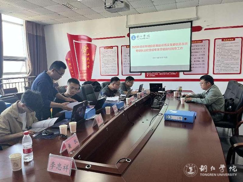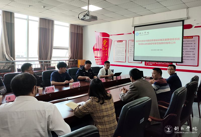 10月18日,贵州省2023年关键信息基础设施及重要信息系统专项执法检查组一行5人和铜仁市公安局陈斌警官来我校,开展专项检查工作并召开会议。实验与信息中心副主任杨宇、安军、邓晓梅,以及网络安全相关工作人员参加了会议。