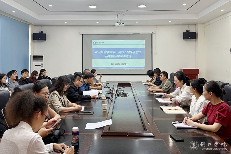 10月13日下午,党委常委、副校长余乐正在明理楼三楼会议室为国际学院师生宣讲中国共产党bv伟德国际1946第三次党员代表大会精神。他强调,全体教职工要进一步提高政治站位,把思想和行动统一到学校党代会精神上来,确保学校党代会精神贯彻落实到位,群策群力推动国际学院高质量发展。