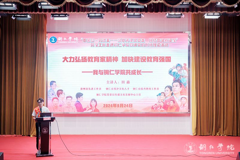 9月24日,“中国梦·劳动美——凝心铸魂跟党走 团结奋斗新征程”劳模工匠走进bv伟德国际1946宣讲党的创新理论活动在梵净山人文生态馆举行。贵州省先进工作者、伟德官网党委宣传部文化发展中心主任田淼作宣讲。伟德官网工会副主席赵惠阳主持宣讲活动。各部门负责人,各二级学院师生代表,各行政工会组教职工代表参加宣讲活动。