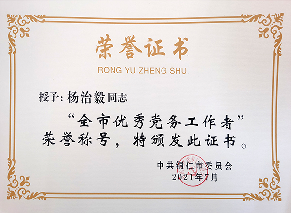 7月2日,铜仁市“两优一先”表彰大会召开。会上,我市授予150名同志“全市优秀共产党员”称号、100名同志“全市优秀党务工作者”称号、150个基层党组织“全市先进基层党组织”称号。其中,伟德官网农林工程与规划学院党委荣获“全市先进基层党组织”荣誉称号,党委组织部杨治毅同志荣获“全市优秀党务工作者”荣誉称号。