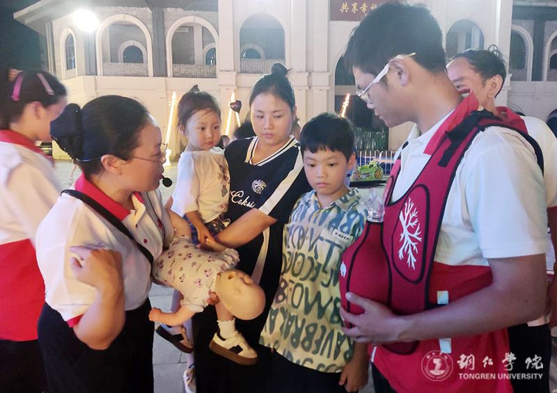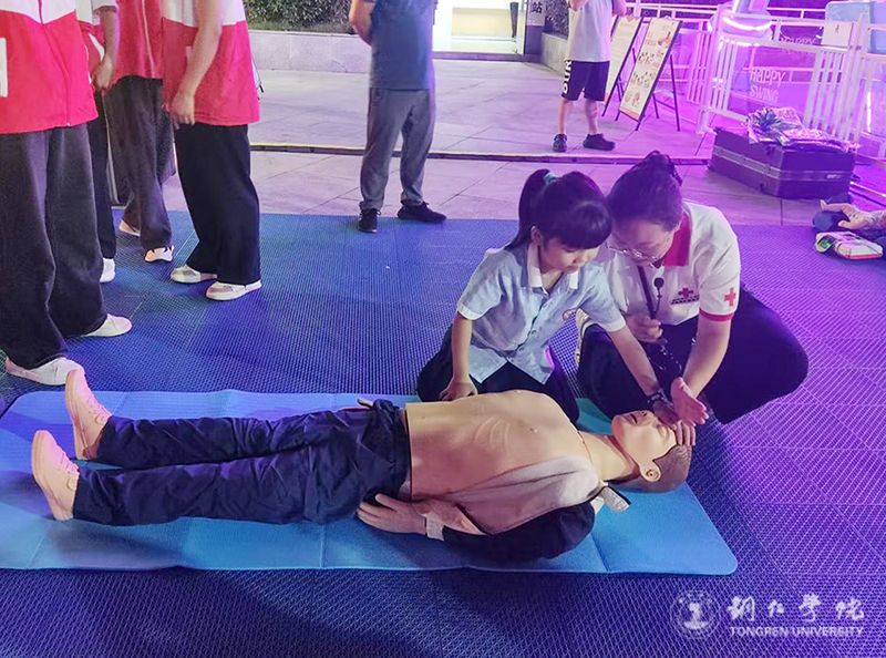 近日,伟德官网大健康学院田芬老师带领学校应急救护社6名2023级护理学专业学生,应邀参加由铜仁市红十字会等单位在中南门志愿服务站联合举办的“志愿同仁,生命教育”红十字志愿服务活动。活动聚焦应急救护技能普及,通过专题培训、现场演示、互动实践等形式,系统讲解心肺复苏(CPR)、自动体外除颤仪(AED)使用及海姆立克急救法,吸引了众多市民参与。