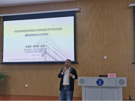 2023年10月12日15:00,国务院政府特殊津贴专家、贵州省省管专家、二级教授焦建军应邀在bv伟德国际1946博思楼105作了题为“一类食饵种群在繁殖区与非繁殖区季节性迁徙的捕食模型的动力学研究”的讲座。讲座由大数据学院院长毛志教授主持,我院师生约200人参加此次学术进座。