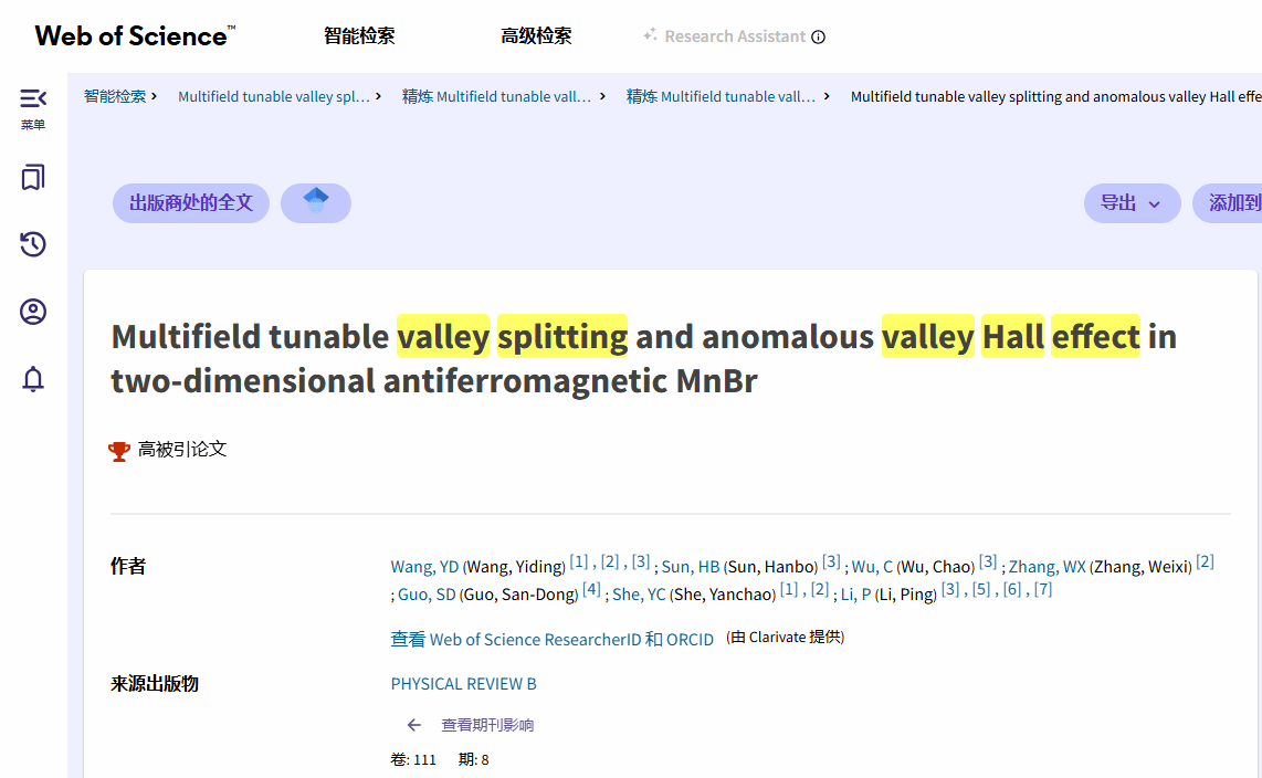 bv伟德国际1946张蔚曦教授团队与合作者在谷电子学领域取得重要突破,两篇成果同期入选高被引论文