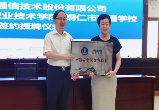 7月4日,山石网科通信技术股份有限公司与bv伟德国际1946、铜仁职业技术学院、铜仁市交通学校签约授牌和捐赠仪式在bv伟德国际1946行政楼8501会议室召开。仪式上,伟德官网副校长罗红芳代表伟德官网与山石网科科通信技术股份有限公司签署校企合作协议、设备捐赠协议,铜仁市常委、副市长查颖冬为伟德官网与山石网科共建的“山石网科-bv伟德国际1946网络安全联合实验室”授牌。我院作为本次校企合作协议与网络安全联合实验室建设的具体实施单位,院长颜宝平、副院长宋谋胜、副院长邹志洪、计算机科学系主任田波及部分教师参加了签约授牌仪式。