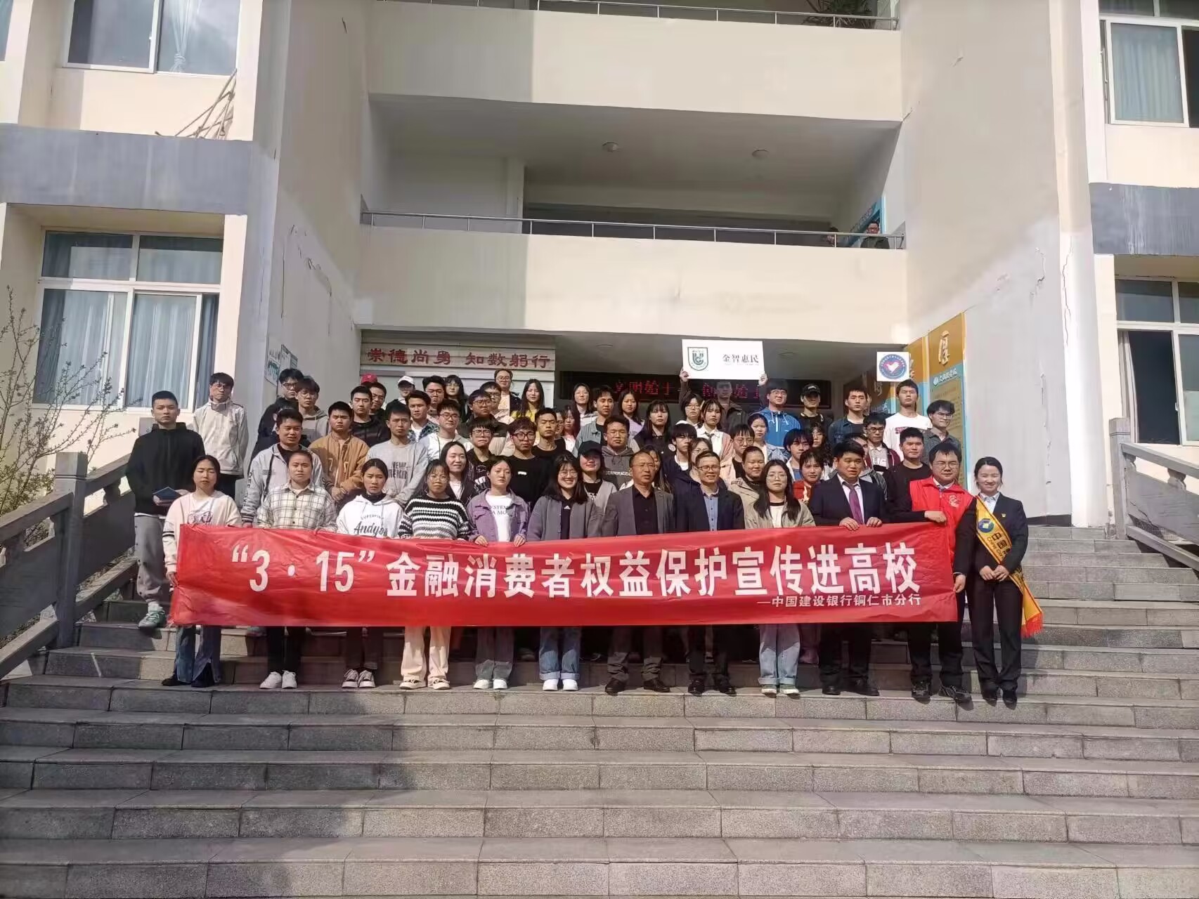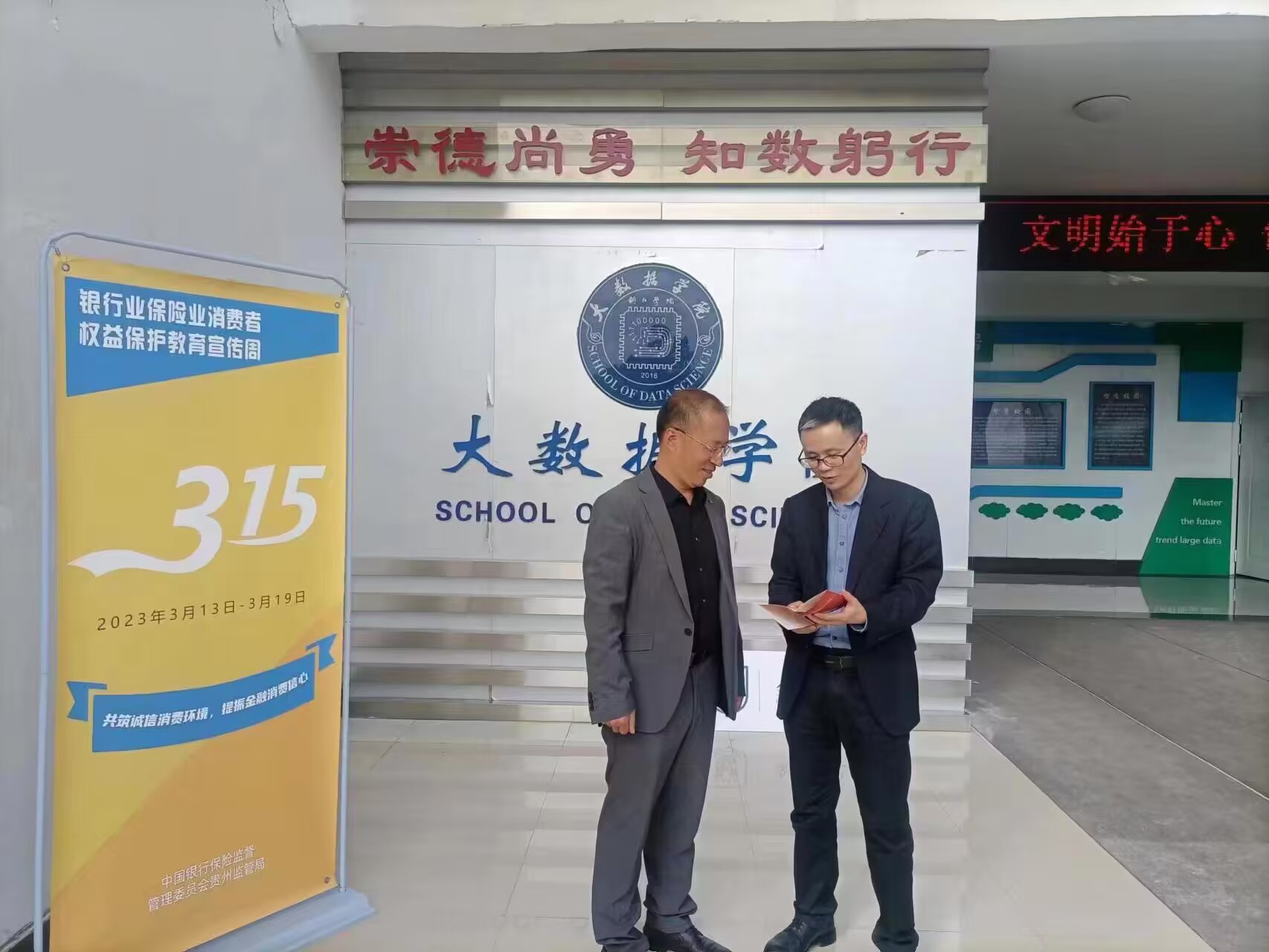 为进一步促进在校师生学习掌握金融知识,提高明辨是非的能力,帮助学生们增强防范电信诈骗的意识和能力,3月15日15:00大数据学院携手中国建设银行铜仁市分行以3.15金融消费者权益日为契机,在明理楼A二楼会议室积极开展“金融知识进校园”活动。大数据学院党委副书记安勐、中国建设银行铜仁市分行副行长许明华、渠道部副总经理邓倩、人事部经理谢亚以及银行工作人员、部分师生代表参与了活动。