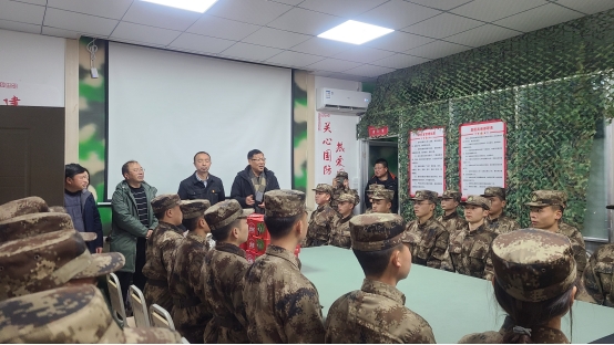 李锦江、徐永东与集训班学员亲切交谈,对学员良好的精神面貌表示欣慰,对他们参军报国的志向高度赞赏。嘱咐他们要服从命令,提前适应部队生活,强壮其体魄,努力锻造成为一名政治合格、军事过硬、技术精湛、作风优良的军人,为大数据增光添彩。安勐仔细询问了此次预征班役前教育训练组织实施情况,与我院参训应征学生亲切交谈。他殷切希望全体役前训练应征学生始终保持昂扬的精神斗志,努力磨炼自己,锻炼自己,发扬好作风,练就过硬的本领,把青春热血奉献给我国的国防事业。