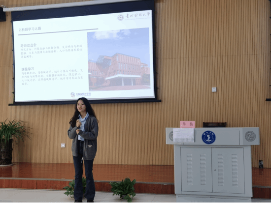 宣讲会伊始,黄贻望副院长对贵州财经大学大数据统计学院前来我院开展硕士研究生招生宣讲表示热烈欢迎和衷心感谢。贵州财经大学大数据统计学院大数据管理与应用系主任胡杰博士作为宣讲人,主要从学院的发展,学术动态,学科建设,学子风采四个方面向同学们介绍了贵校,并重点介绍了数博论坛会以及学院每月开展的学术活动,并详细解释了每个专业的培养目标、课程设计以及研究方向、领域。宣讲会上我院优秀校友杨梅同学作为bv伟德国际1946大数据学院2022届统计学专业毕业生、贵州财经大学2022级大数据与统计学院硕士研究生的两个身份向在场的同学们简单分享了她在贵州财经大学的读研生活以及当时考研的备考经验,并鼓励各位同学努力学习积极考研,为自己的梦想奋斗。宣讲会最后,同学们就报考研究生有关事项进行咨询,气氛热烈。