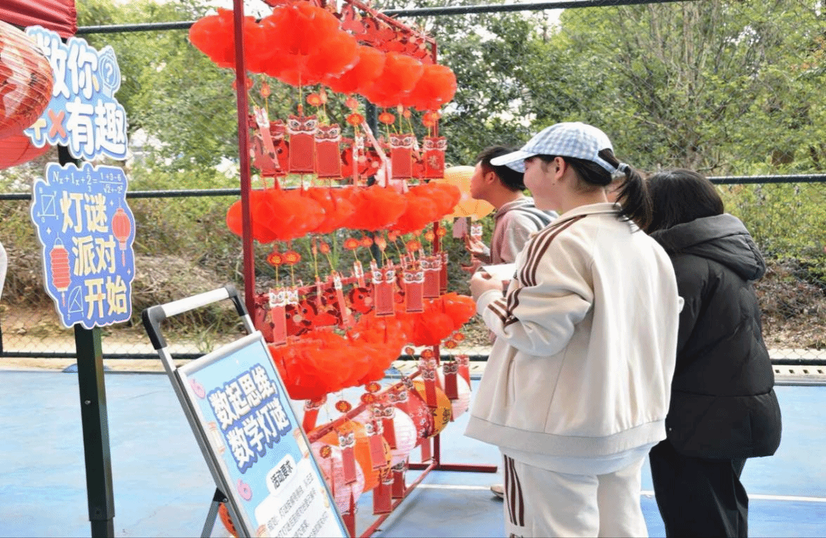 (图为同学们参与数学灯谜活动)