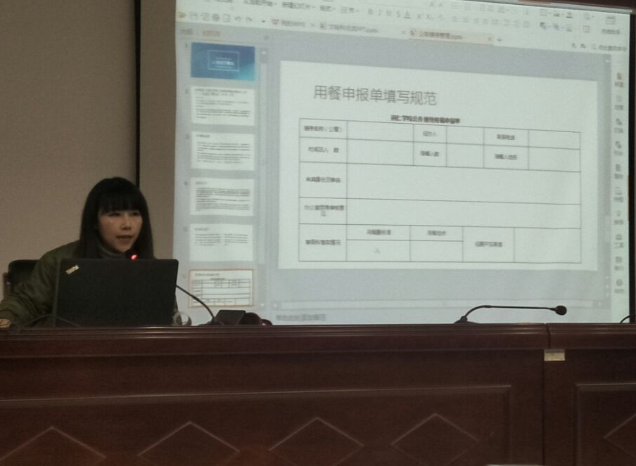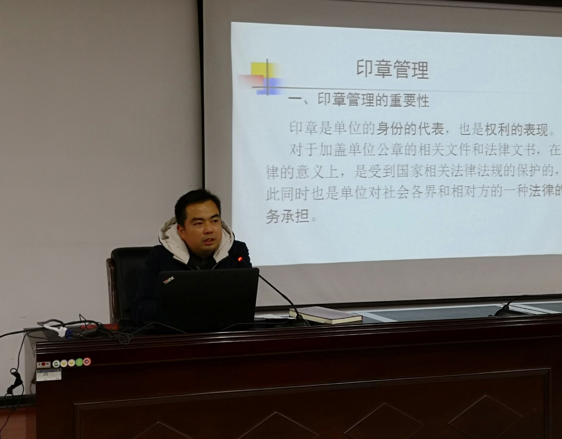 党政办综合科科长杨雷霄就会务安排、印章管理、来文处理等做了详细讲解,文秘科樊向国和向菲分别介绍了校内发文相关流程和校长周一例会等会议流程及定期报送总结相关事宜,事务科赵薇就公务接待做了详细介绍。