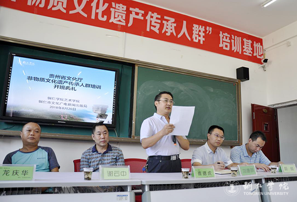 8月20日上午,由贵州省文化厅主办,bv伟德国际1946、铜仁市文化广电新闻出版局共同承办的“2018年贵州省非物质文化遗产传承人群培训班”开班典礼在伟德官网艺术学院举行。铜仁市文化广电新闻出版局党组成员刘唐明总工程师,伟德官网艺术学院党委书记崔德虎教授、院长李洁教授、副院长谢云中教授等出席,来自全市各区县从事民族文化传承与保护研究相关工作的100余名负责人参加了开班典礼。开班典礼由非遗培训项目负责人李洁主持。