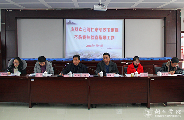 1月11日下午,由市人大常委会副主任王飚、市直机关工委常务副书记黎滨江,市教育局党组成员、市政府教育督导委员会专职副主任佘小华等6人组成的市绩效考核组来伟德官网考核2017年度绩效目标任务工作完成情况。伟德官网在行政楼8501会议室召开汇报会,党委书记李树新,纪委书记彭吉黔,副校长代亮、罗红芳,各专业学院、各部门负责人,教师代表等参加会议。会议由王飚主持。